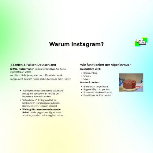 (v.a. junge Menschen erreichen) - Wissen um die Moderationsrichtlinien der Plattform (Shadowbans, Drittaccounts)